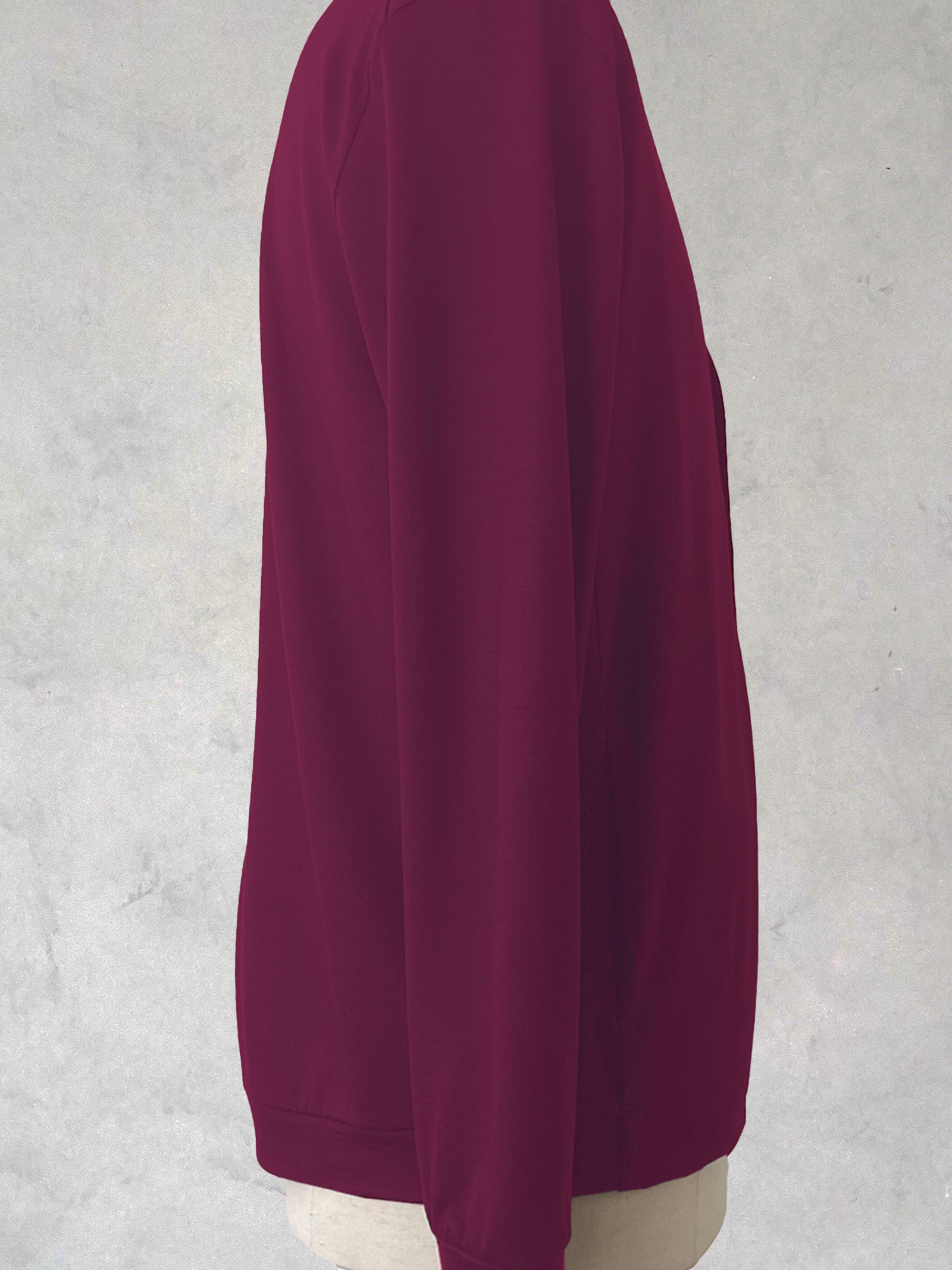 Super100'sメリノウールが持つ自然なとろみと、C-one独自のパターンが融合。身体のラインを拾いすぎず、美しく自然なドレープを生み出します。カジュアルでありながら、洗練された大人の品格を演出。どんなボトムスにも合わせやすく、着る人のスタイルを引き立てます。
