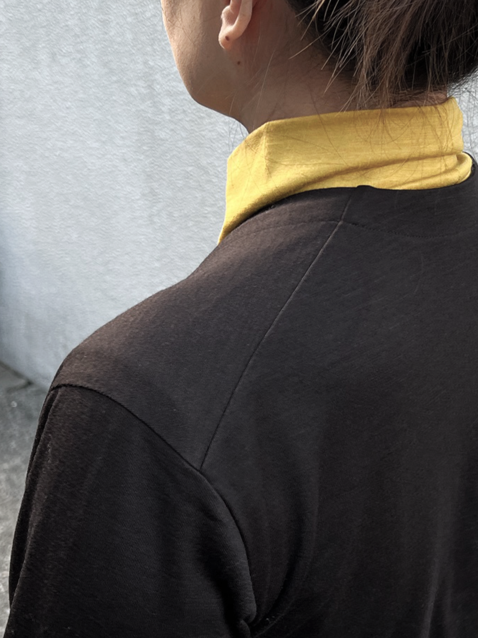 肩線を後ろに下げることで 肩周りが馴染んでくれます