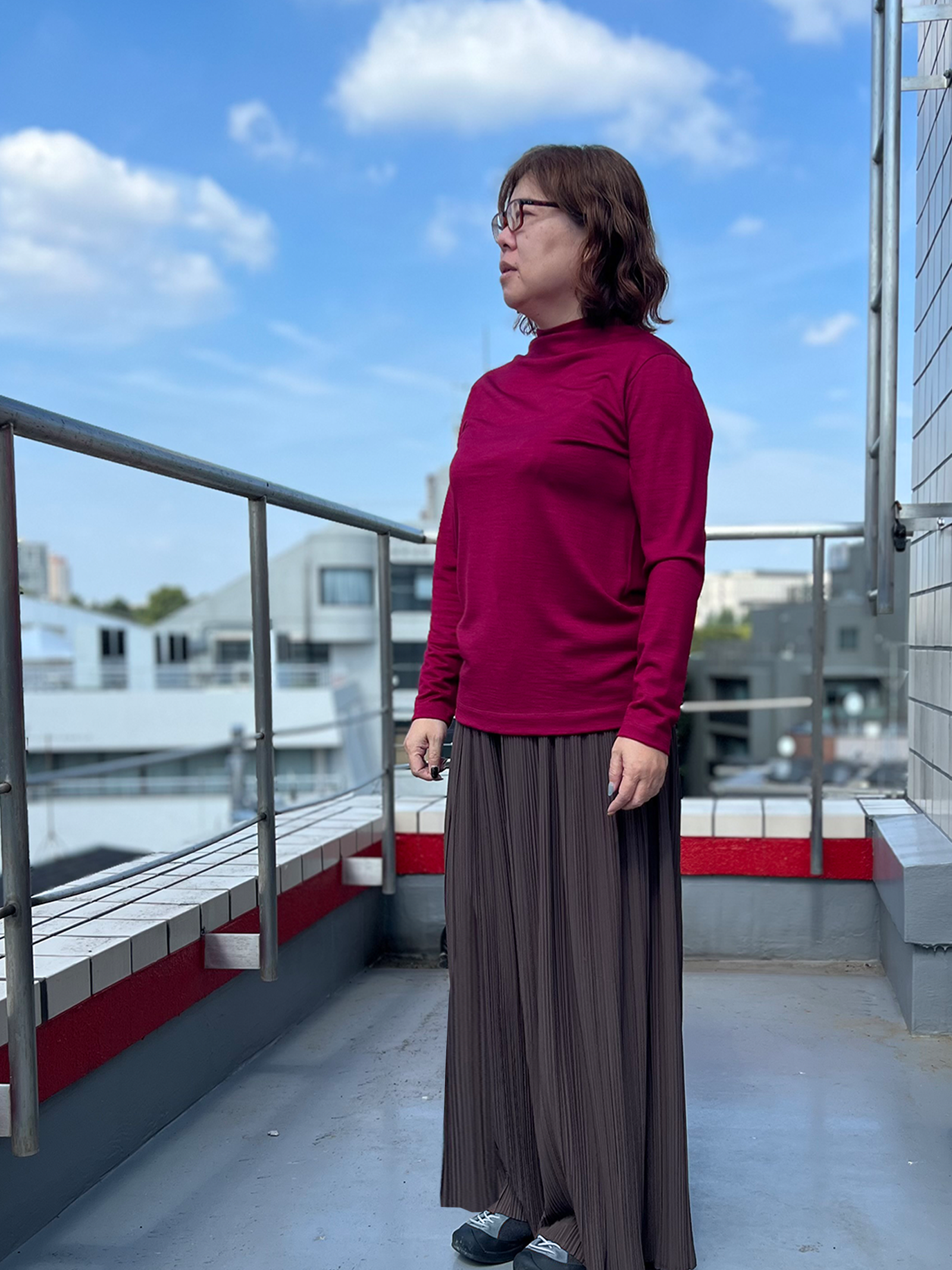 メリノウールボトルネック長袖Tシャツ:細部に宿る、C-oneのこだわり