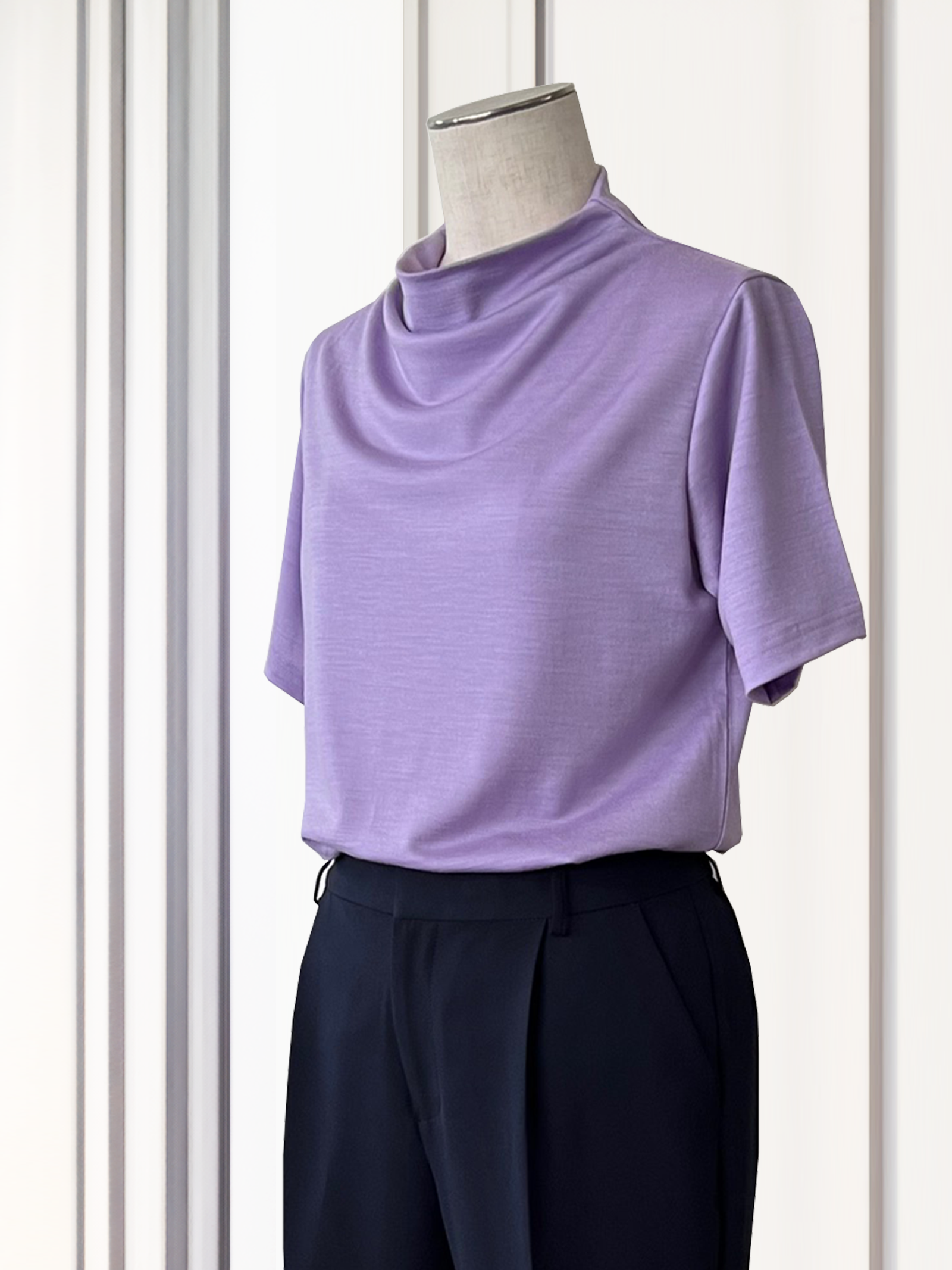 品格あるボトルネックが知的な印象を与えるメリノウールカットソーです。