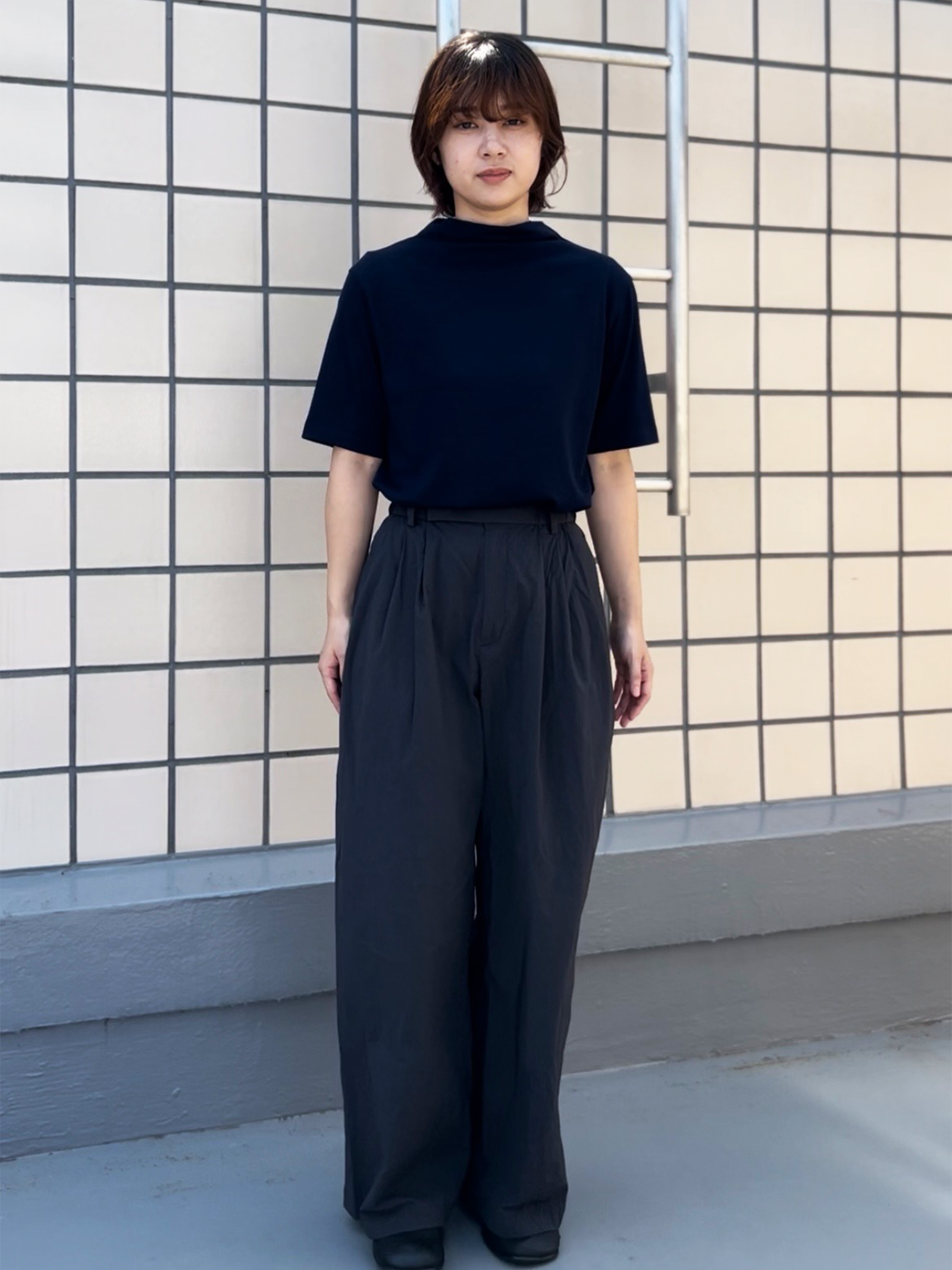 「どう着こなせばいい?」お客様の声から生まれた、メリノウールボトルネックカットソーのおすすめスタイルをご紹介します。**(身長と着用サイズも参考にしてください)**