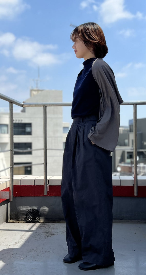 ジャージー素材とウール素材を合わせることで相乗効果を生み