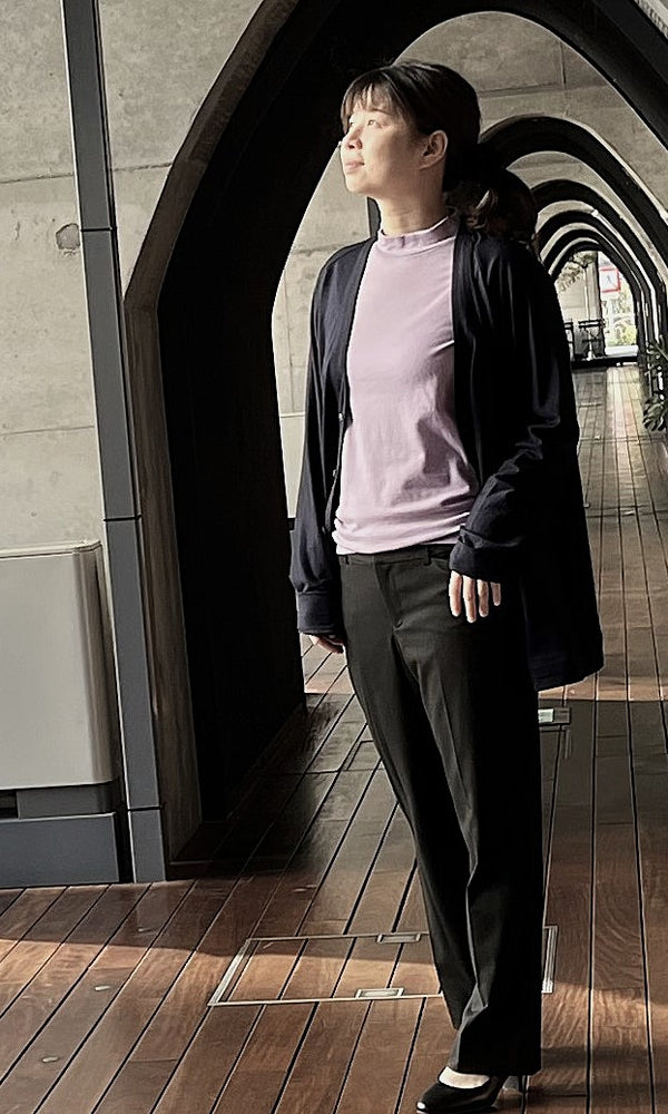 ウール特有のチクチク感はほとんどなく、敏感肌の方にも心地よくお召しいただけます。ただし、感じ方には個人差がございますこと、あらかじめご了承ください。