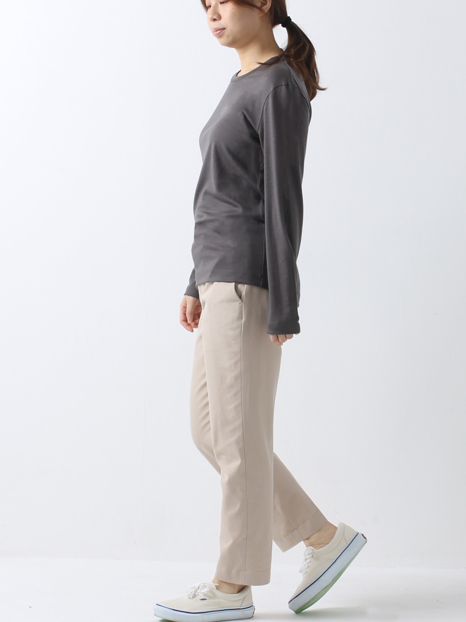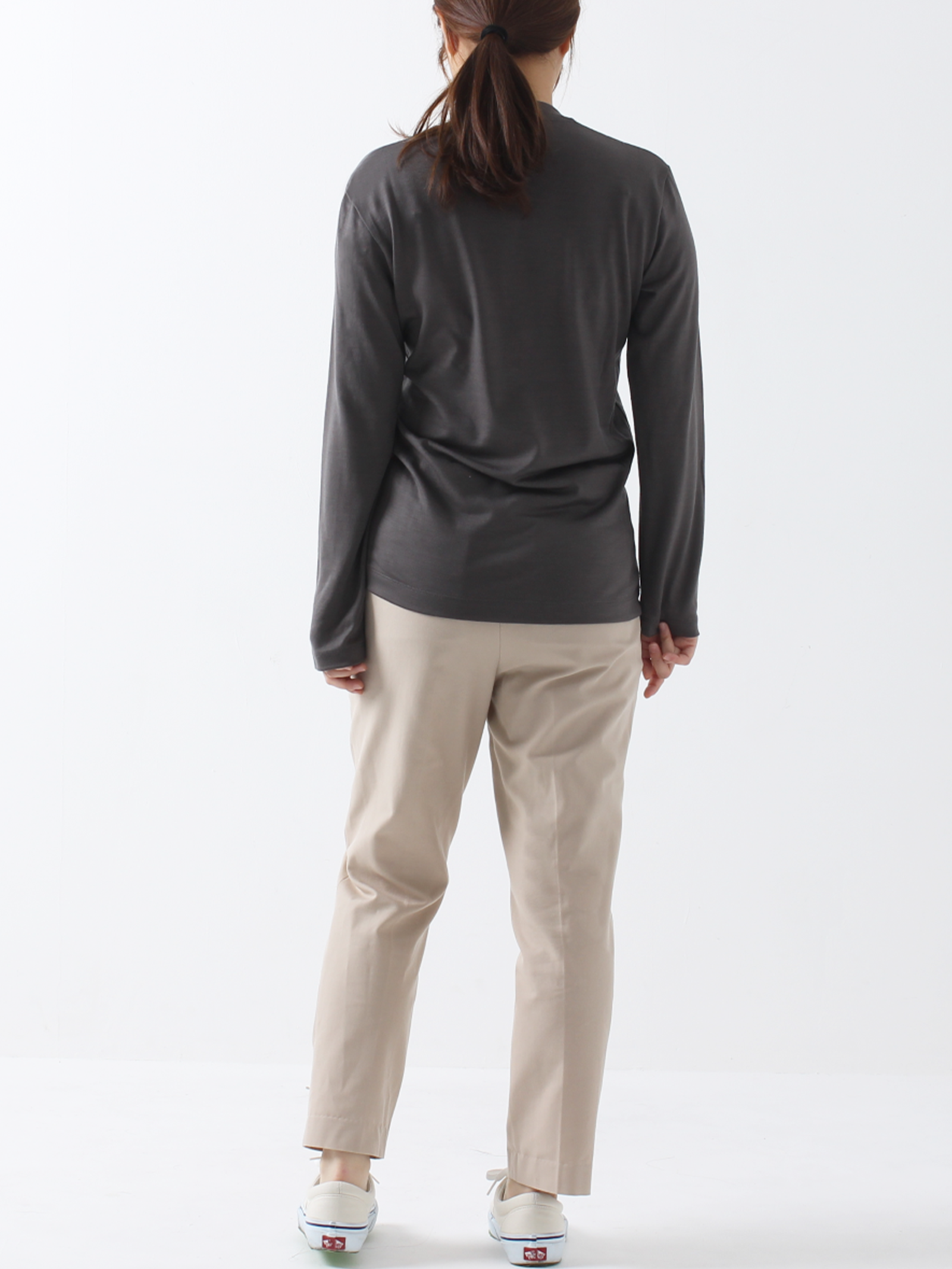 這款長袖 T 恤採略高的領口設計,外套內搭時可避免領緣與頸部直接摩擦,並減少外套沾染皮膚油脂。