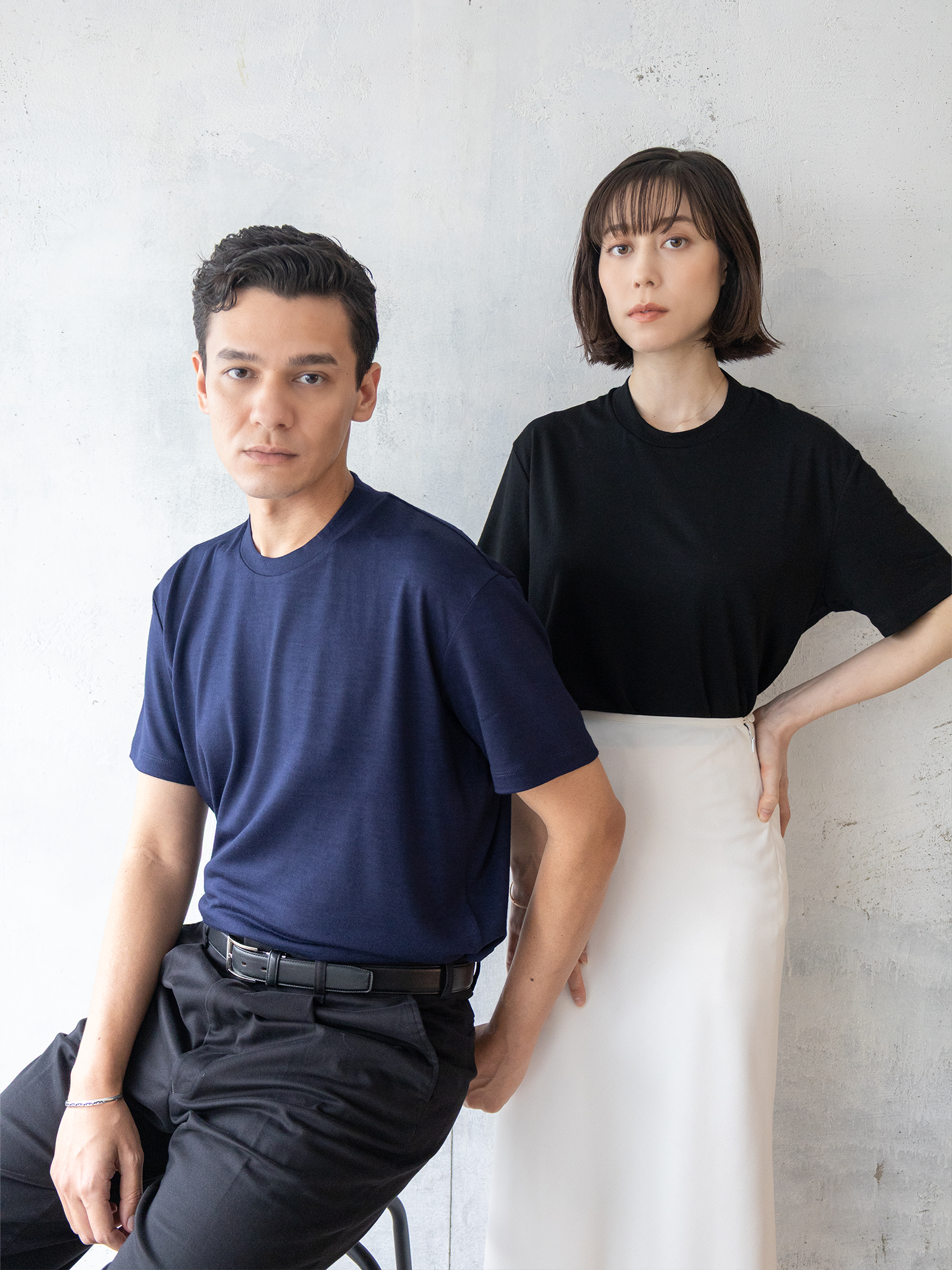 C-one 全系列 T 恤共用的極上素材「Super100's 美麗諾羊毛」。這一件,將改變你的日常。