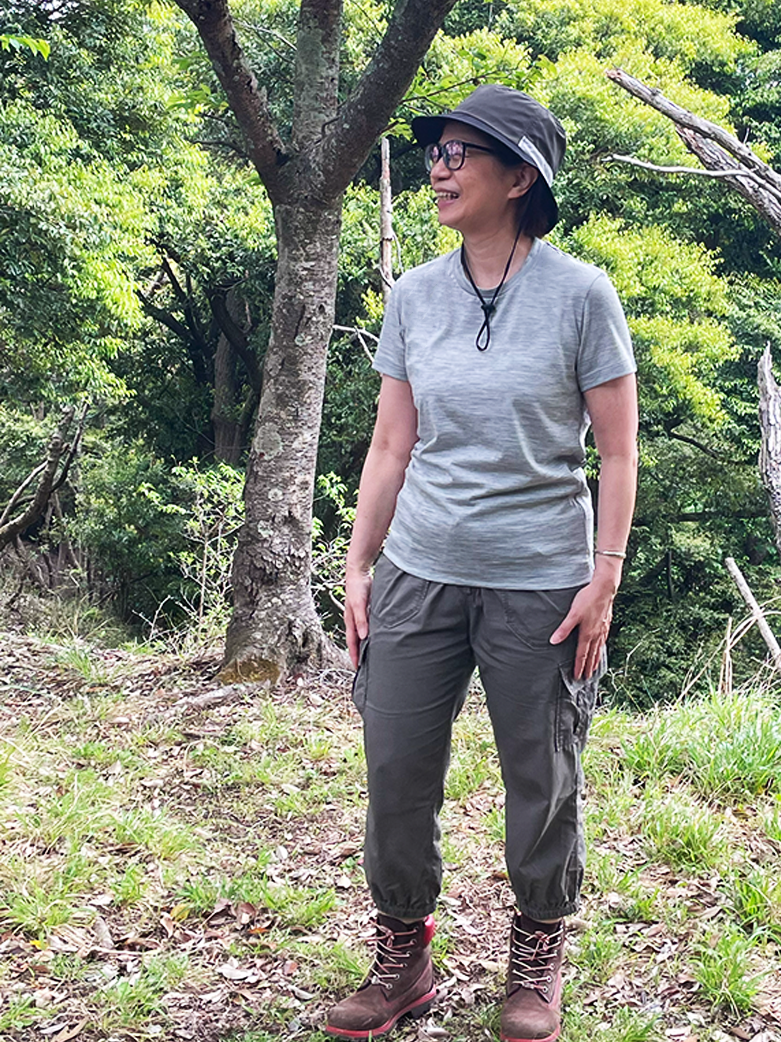 以下示範 C HIGH END 美麗諾羊毛短袖 T 恤的推薦穿搭。(可參考身高與尺寸)