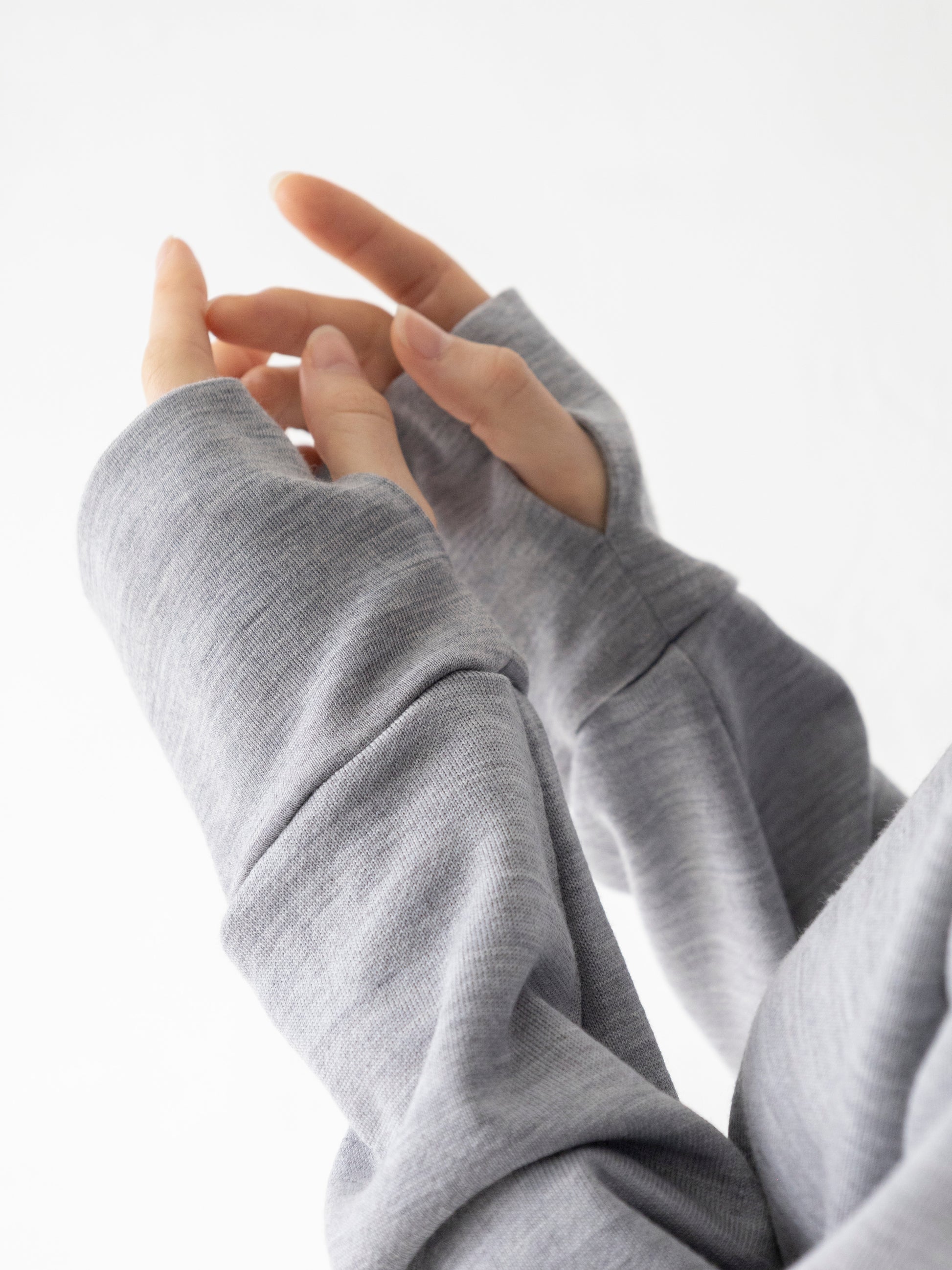 輕盈保暖,內側為 100% 美麗諾羊毛,親膚到讓人一穿再穿。雖是休閒代表的運動衫,但我們也對其做了許多細緻調整