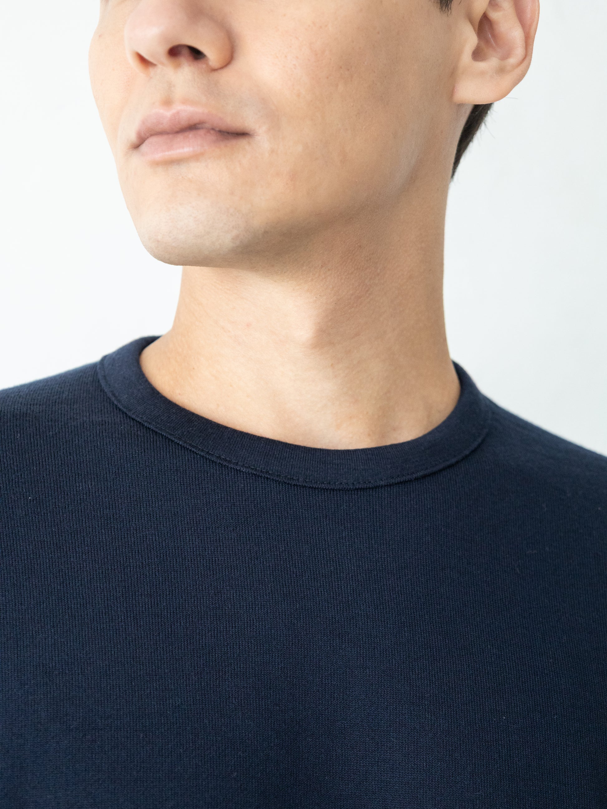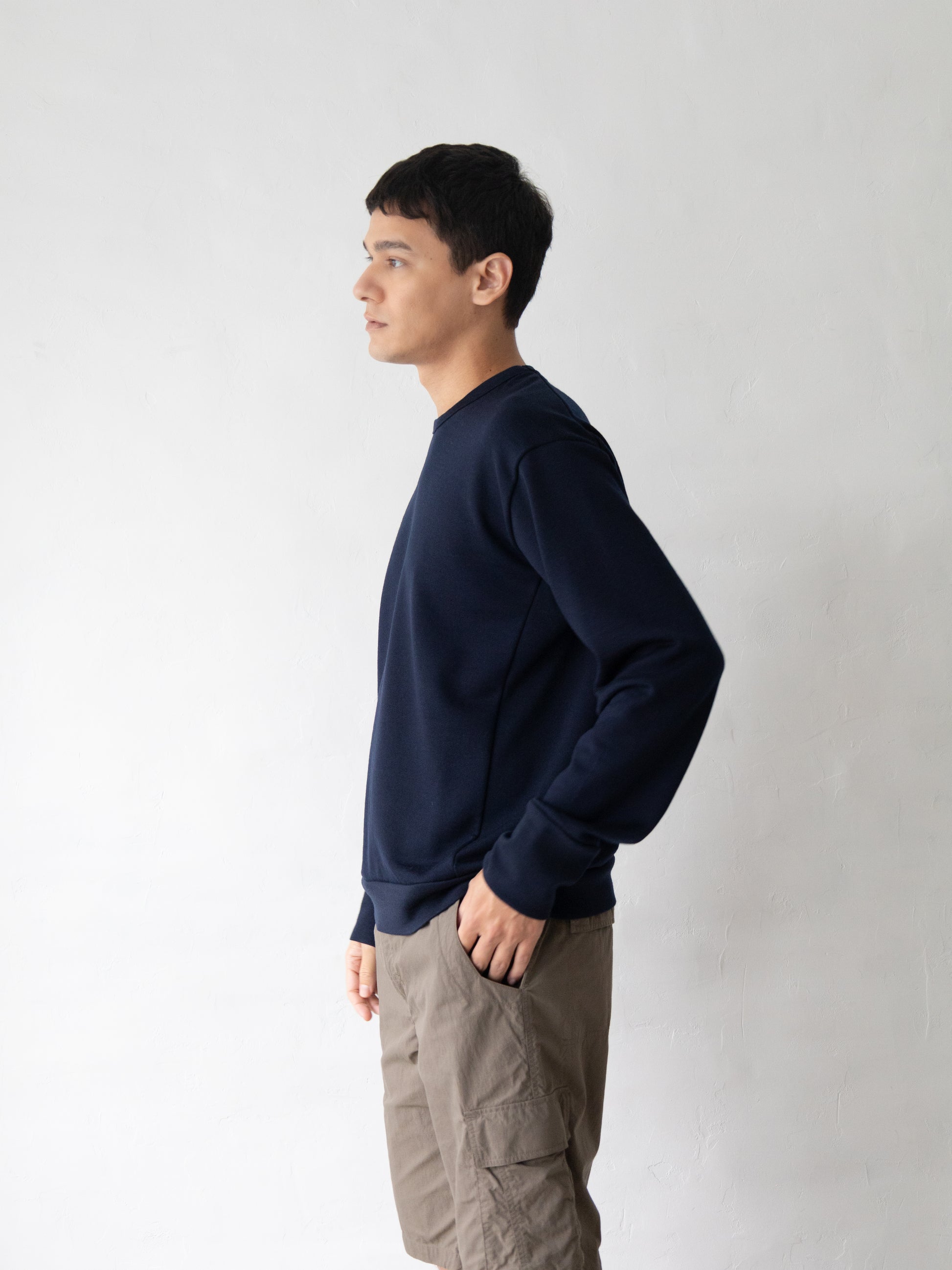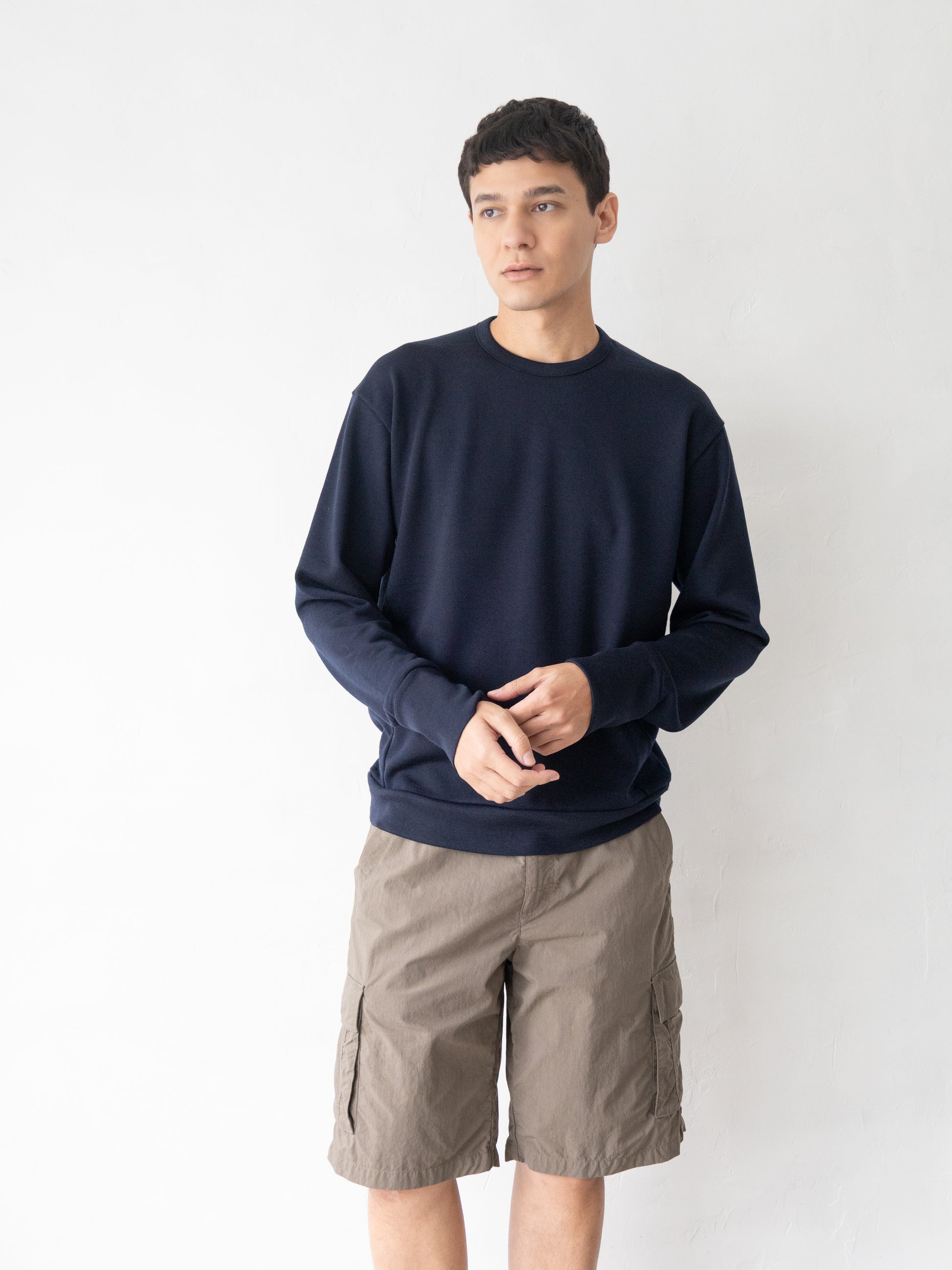 這件看起來像一般大學T的運動衫,一摸就知道不一樣:蓬鬆柔軟、輕盈好穿,差異立刻感受得到。面對每年氣候多變、難以拿捏穿搭的時候,它剛剛好能應對;介於毛衣與衛衣之間的舒適存在,讓你更好調整日常溫度。